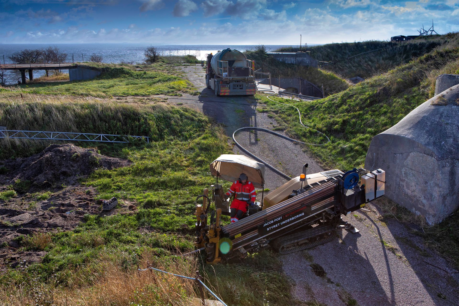 I forbindelse med udviklingen af Middelgrundsfortet til Ungdommens Ø, var der behov for at bore flere Ø110mm rør fra toppen af fortet til terrænet umiddelbart over vandet.